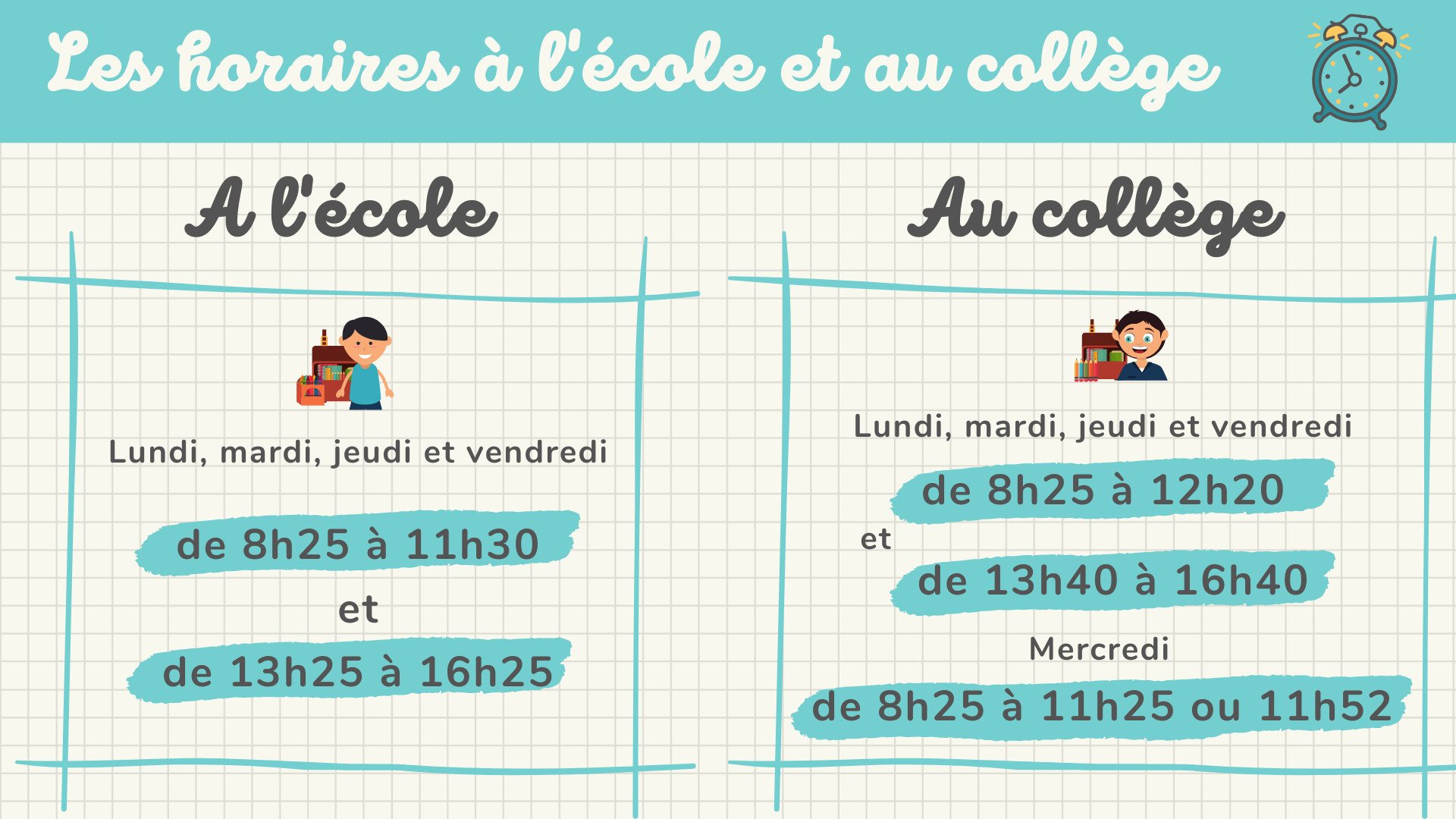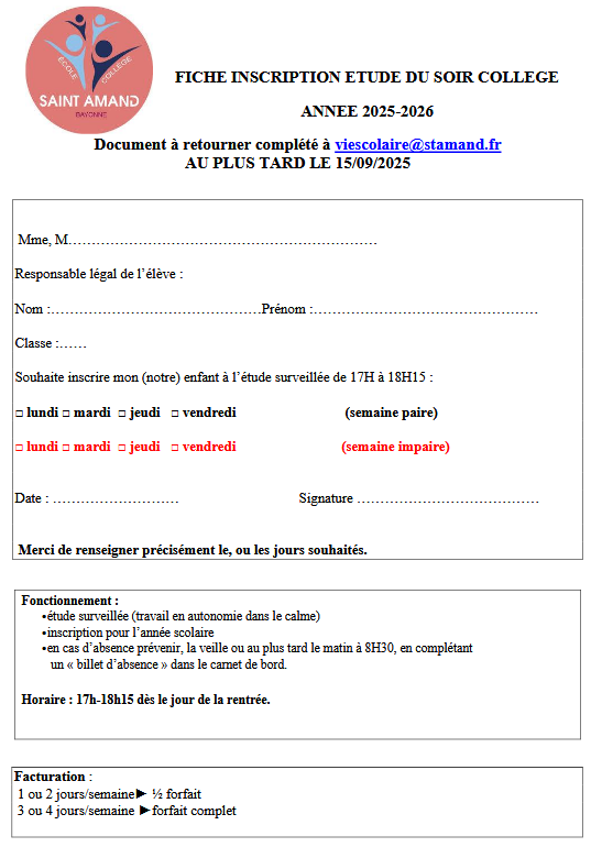 • Horaires, étude et garderie