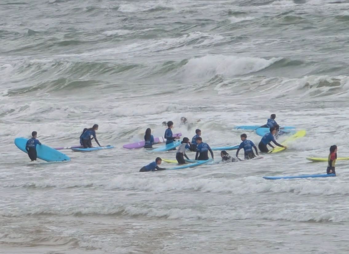 Le lendemain nos élèves ont pu suivre les cours et visiter Biarritz. Que serait Biarritz sans ses planches de surf … aussi les élèves ont pu profiter de bonnes conditions pour glisser sur la vague grâce aux moniteurs de l’école Hastea, au top.
